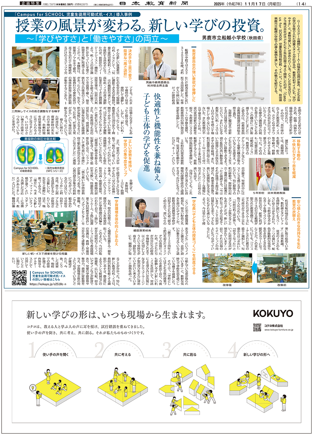 コクヨ「Campus for SCHOOL 児童生徒用可動式机・イス 導入事例」